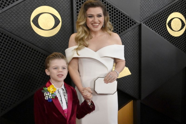Kelly Clarkson walks Grammys red carpet with son Remington