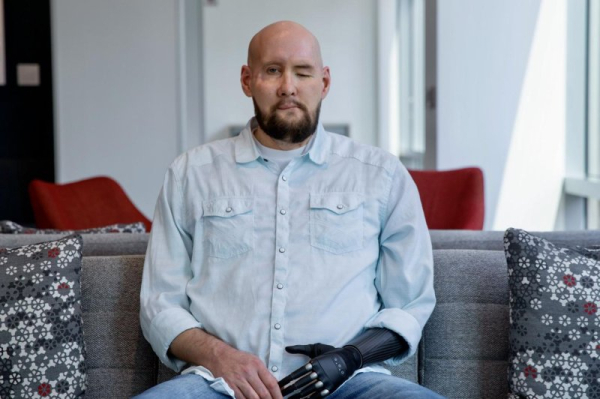 1 of 3 | Aaron James, a military veteran from Hot Springs Village, Ark., is shown after the world’s first whole-eye and partial-face transplant. Photo by Haley Ricciardi/NYU Langone Health